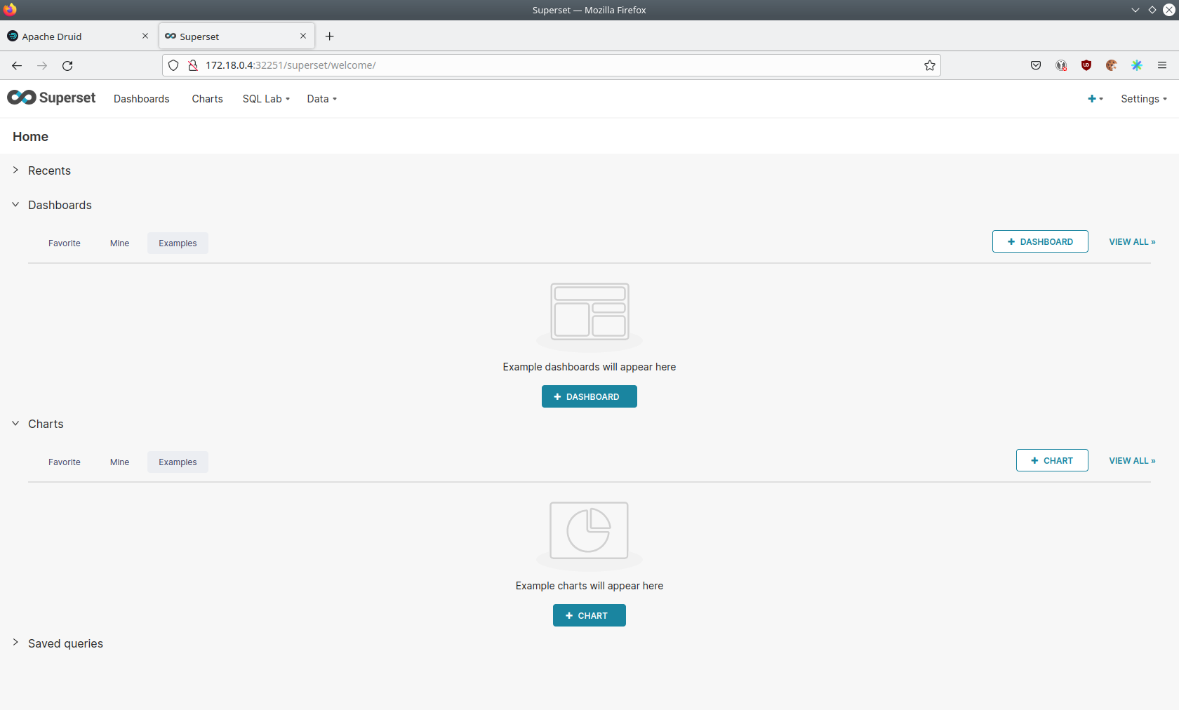 Superset was used as a web-based frontend to execute SQL statements and build dashboards.